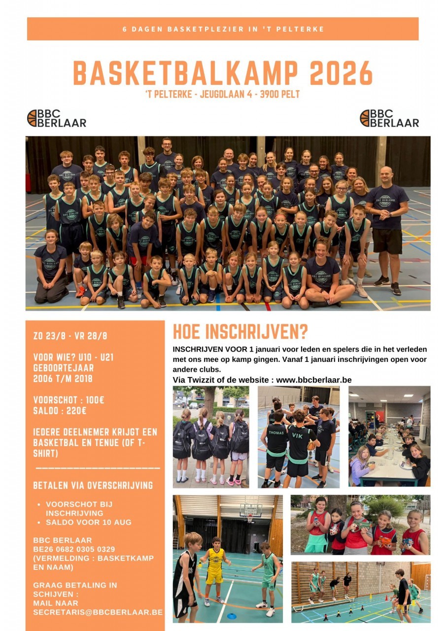 Van 23 t/m 30 augustus 2026 gaat BBC Berlaar op kamp naar 't Pelterke.
